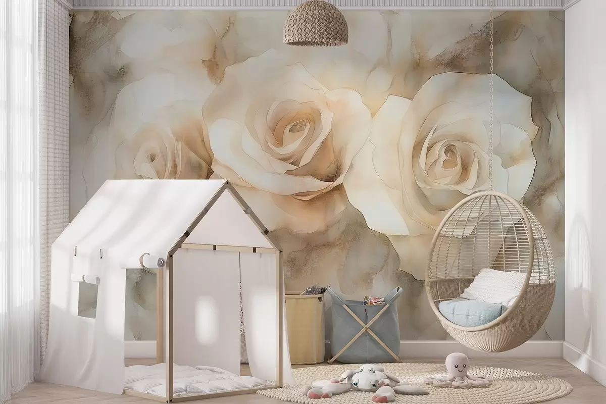 Fototapety Krásne ruže, akvarelový štýl, béžové farby, bohémske Nr. w02492
