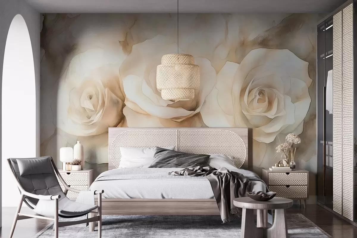 Fototapety Krásne ruže, akvarelový štýl, béžové farby, bohémske Nr. w02492