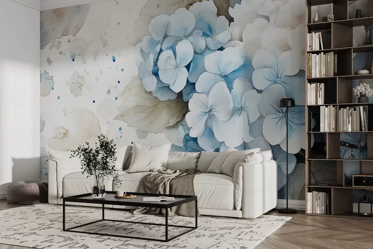 Fototapety Akvarelový štýl kresby kvetov hortenzie s listami, mäkké prírodné farby Nr. w02493