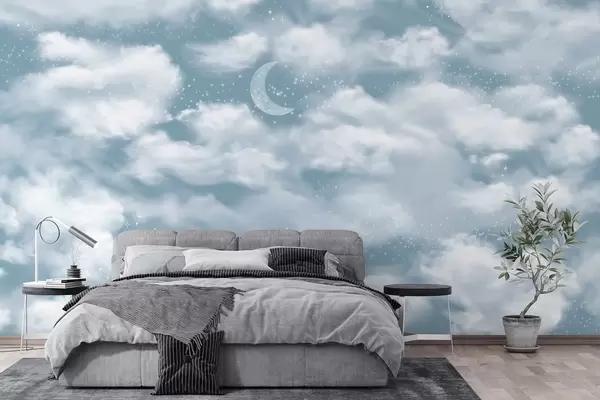Fototapety Hviezdna obloha s mesiacom a mrakmi, zasnená, éterická, jemné modré farby Nr. w02515v1