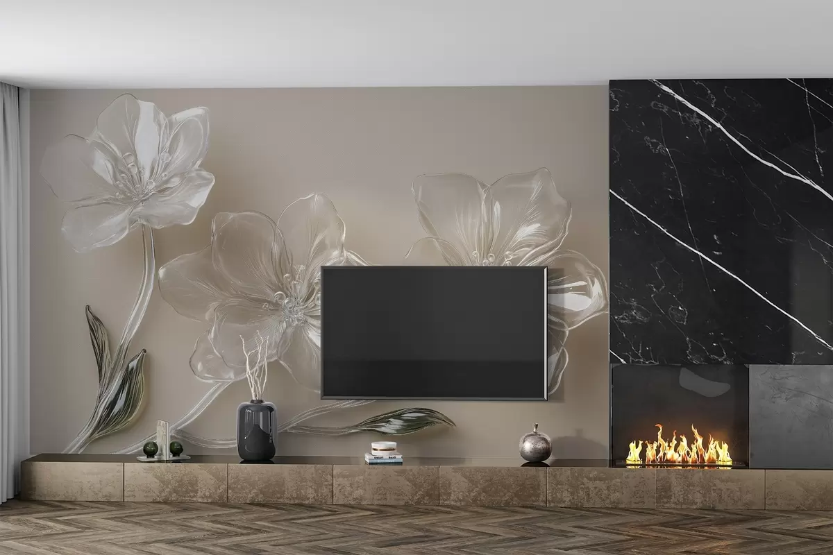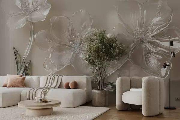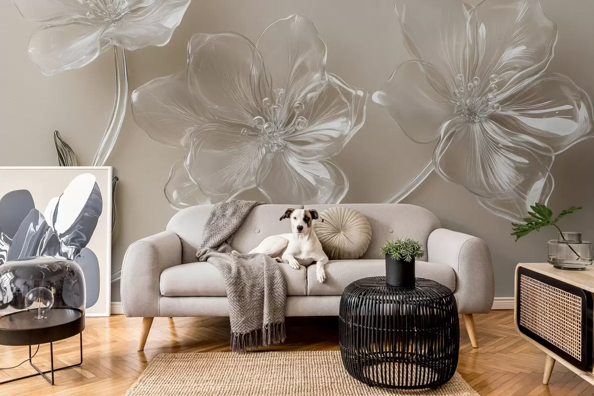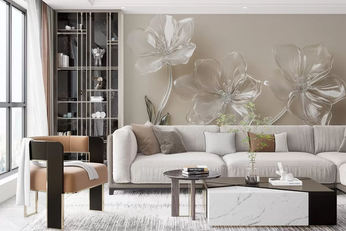 Fototapety veľké kvety z imitácie skla na béžovom pozadí Nr. w02518