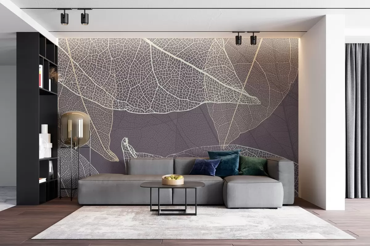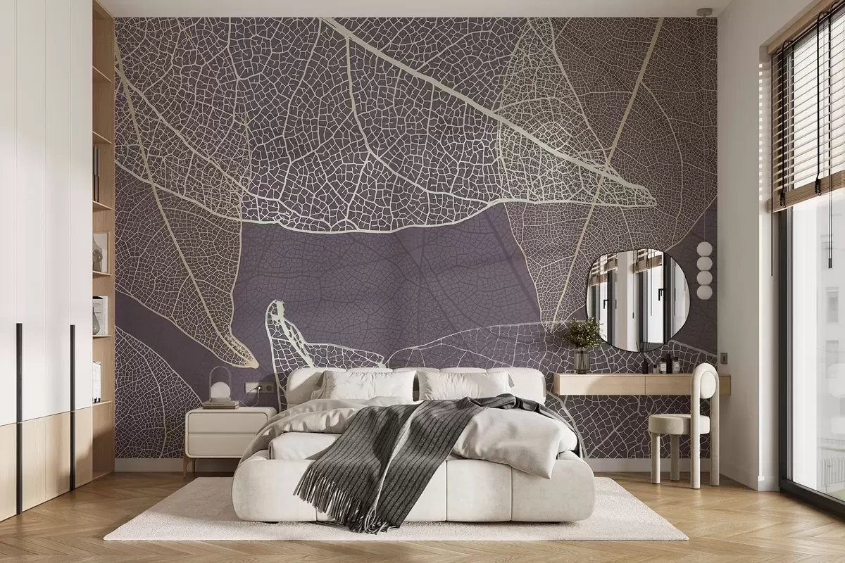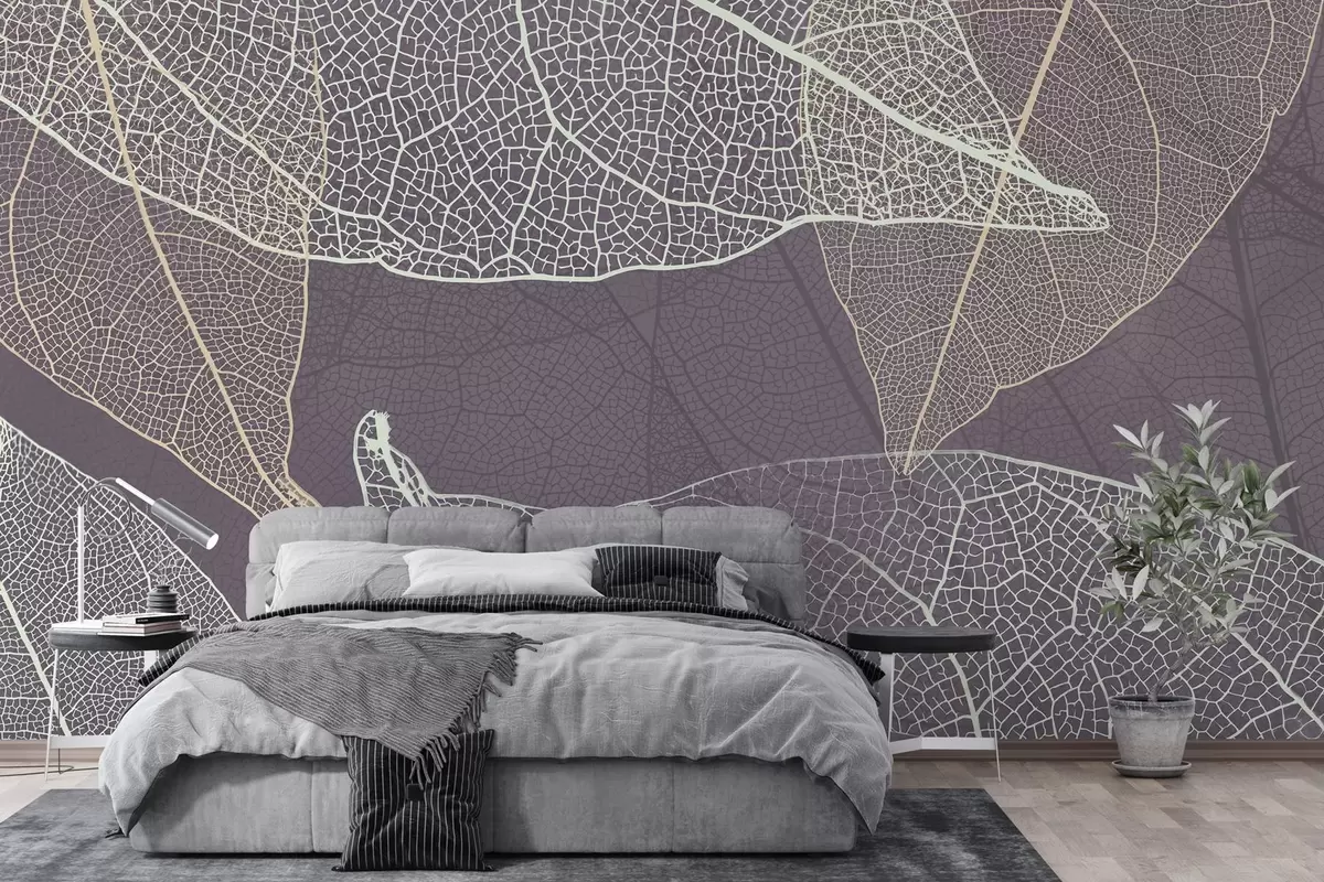 Fototapety detailný záber na listy so žilkami vo fialovo-sivých tónoch Nr. w02520v3
