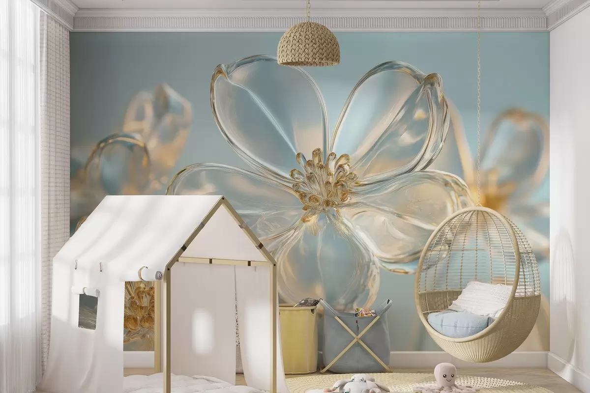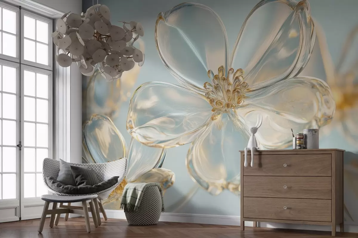 Fototapety veľké sklenené kvety v modrých tónoch Nr. w02521
