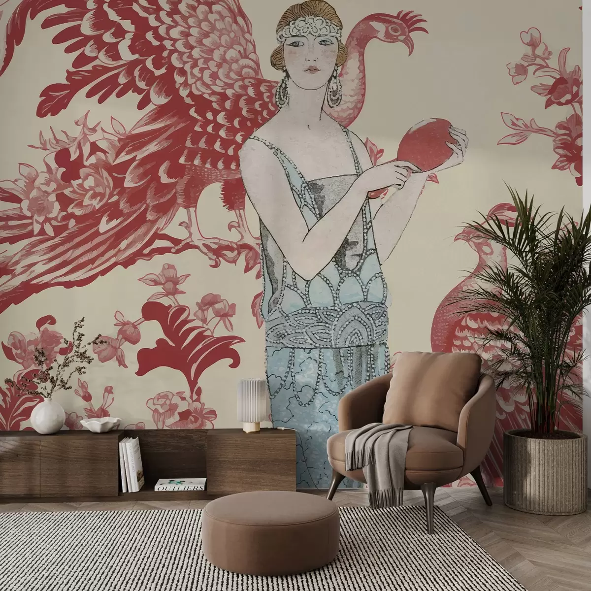 Fototapety Elegantný vintage kvetinový vzor so ženou v červených farbách Nr. w02532v1