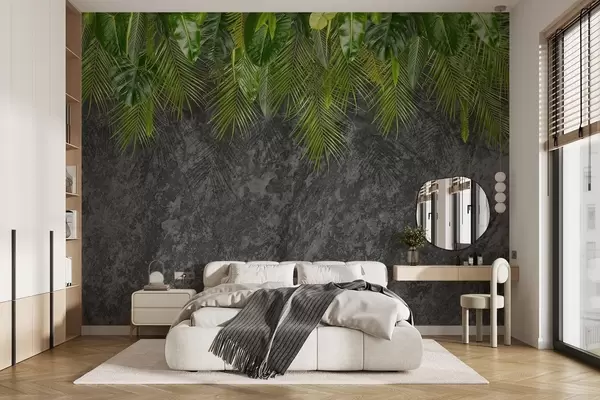Fototapety tropické listy na pozadí imitácie kameňa Nr. w02547