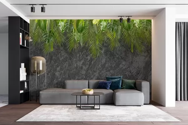 Fototapety tropické listy na pozadí imitácie kameňa Nr. w02547
