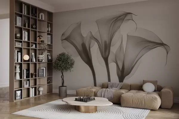 Fototapety vzdušné transparentné kvety Zantedeschia v béžových tónoch Nr. w02632