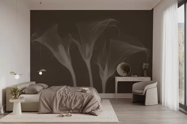 Fototapety vzdušné transparentné kvety Zantedeschia na tmavom pozadí Nr. w02632v1