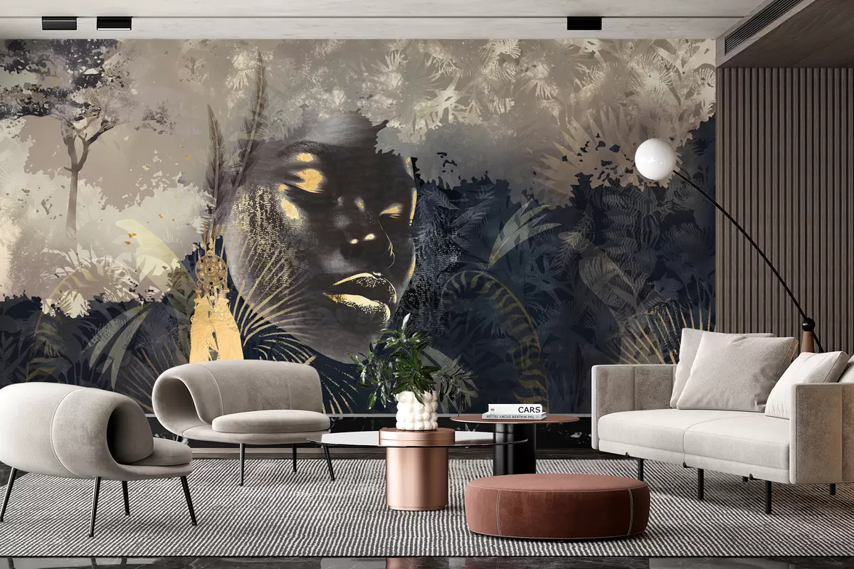 Fototapety Magická Afrika s dažďovým pralesom, dievčenské a vektorové prvky s modrým odtieňom Nr. w02642v1