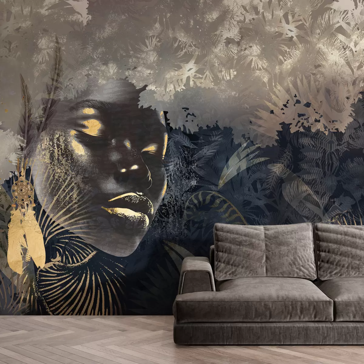Fototapety Magická Afrika s dažďovým pralesom, dievčenské a vektorové prvky s modrým odtieňom Nr. w02642v1