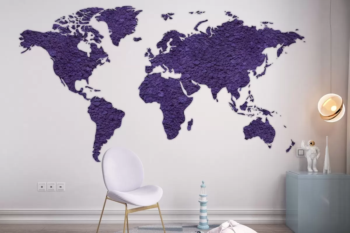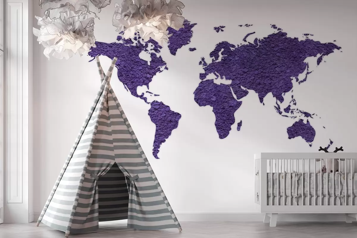 Fototapety Mapa sveta s machom, príroda, fialová paleta farieb Nr. w02657v3