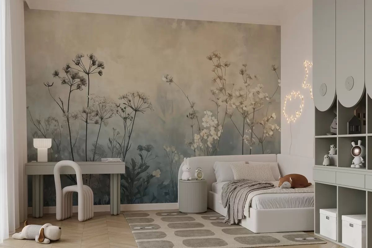 Fototapety tapety v ekologickom štýle s divokými kvetmi a rastlinami na textúrovanom pozadí Nr. w02685
