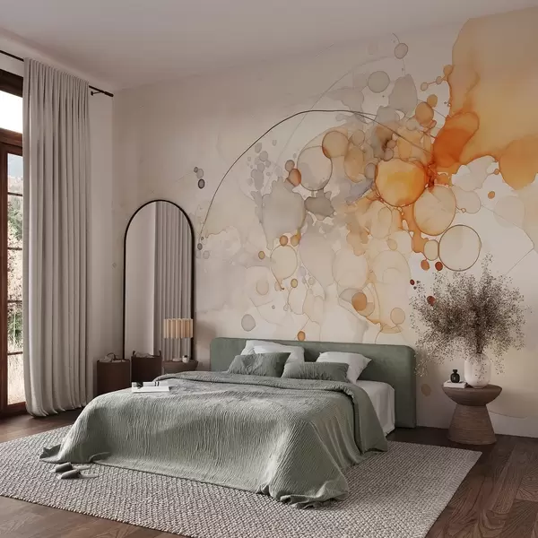 Fototapety Abstraktné tekuté umenie, akvarelový štýl, oranžové a béžové farby Nr. w02746