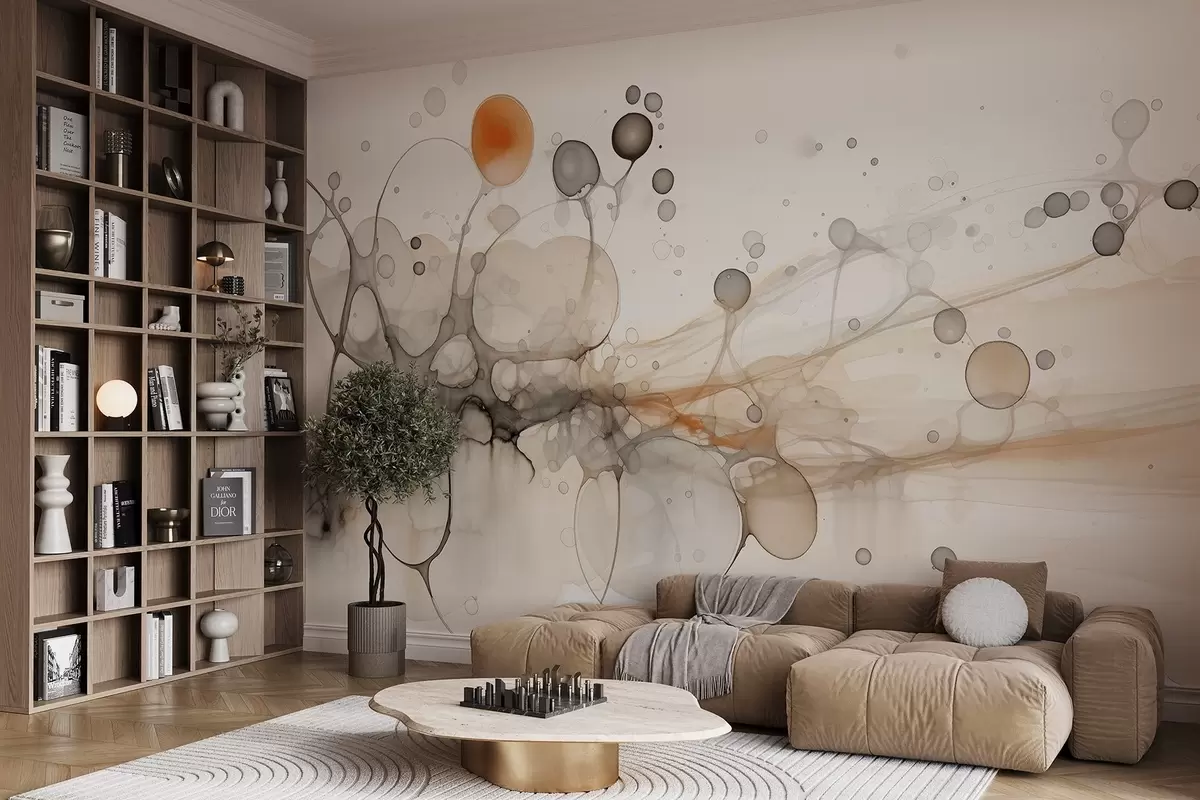 Fototapety Abstrakcia, minimalizmus, tušové umenie, tekutina, béžové a sivé farby Nr. w02750
