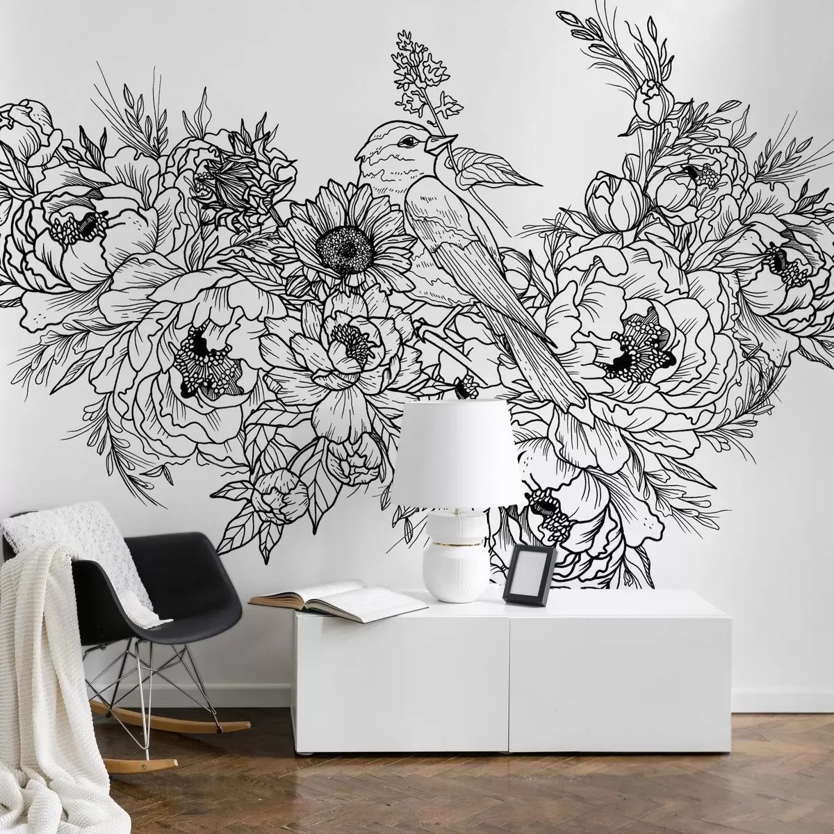 Fototapety Podrobné líniové umenie vtáka a kvetinového aranžmánu Nr. w02833v1