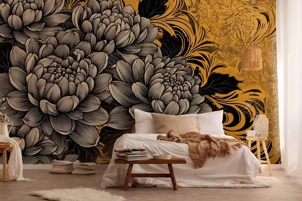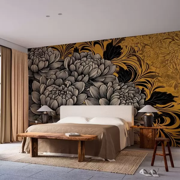 Fototapety Svieže pivonky v grafickom štýle na žltom vzorovanom pozadí Nr. w02876