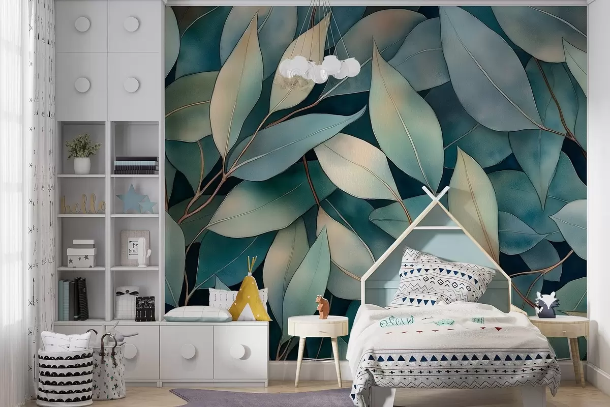 Fototapety Eukalyptové listy, akvarelový štýl kresby, kvetinový vzor, zelené farby Nr. w02931
