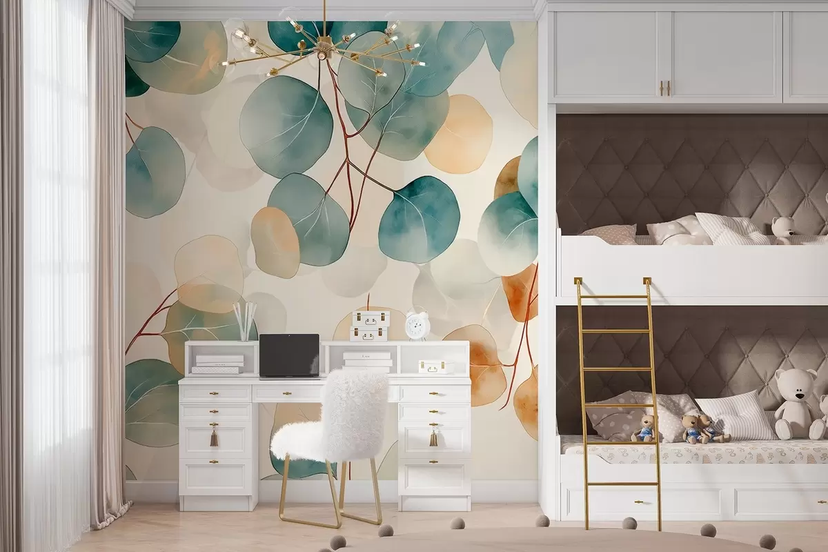 Fototapety Akvarelový štýl kresby eukalyptu, mäkké pastelové farby, kvetinový Nr. w02938