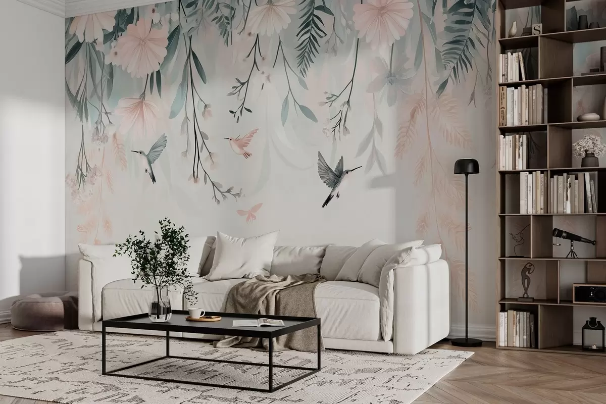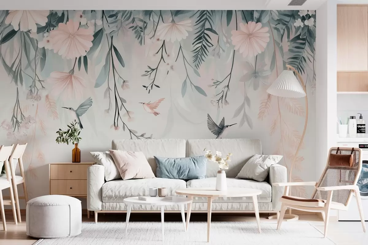 Fototapety ružové kvety v imitácii maliarskej techniky visiace zhora Nr. w03012