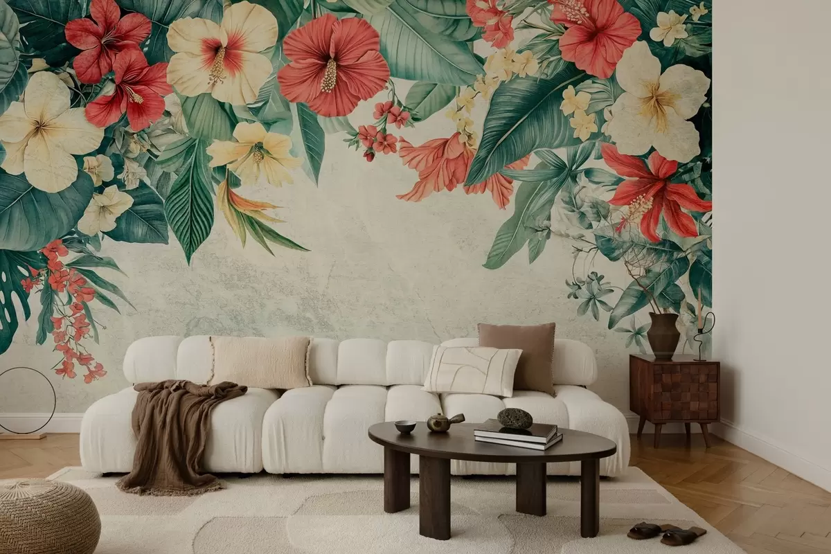 Fototapety tropické kvety a rastliny visiace zhora na textúrovanom pozadí Nr. w03023