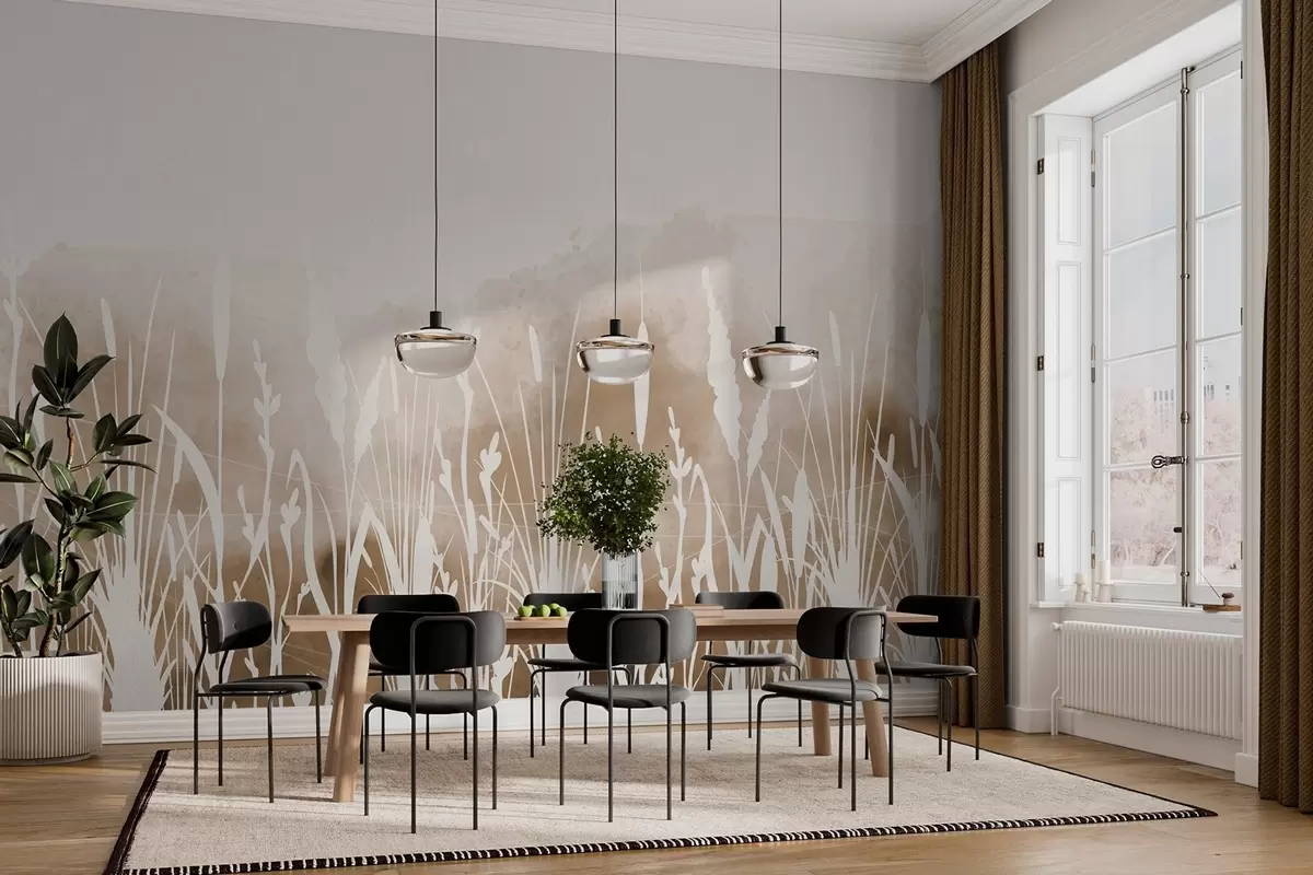 Fototapety Siluety lúčnych rastlín na svetlom pozadí Nr. w03134