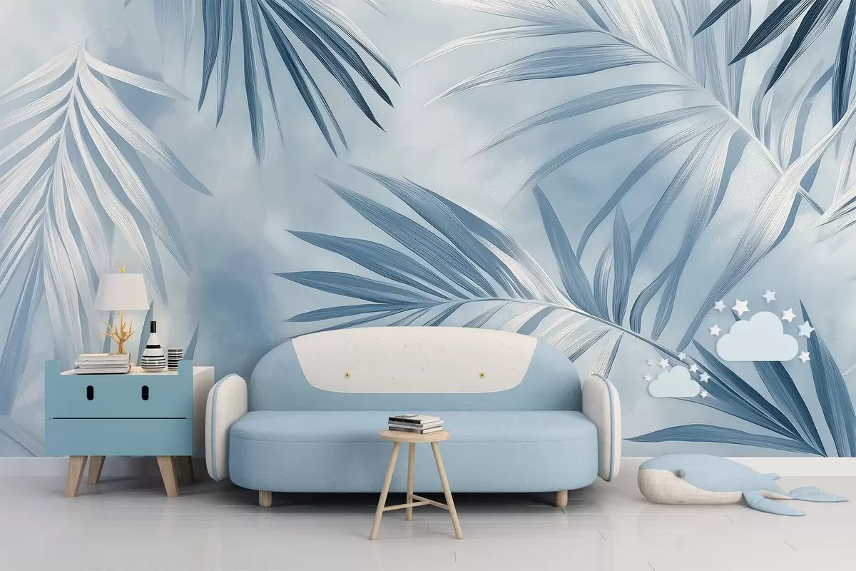 Fototapety Abstrakcia tropických listov, palma, modrá paleta farieb Nr. w03153
