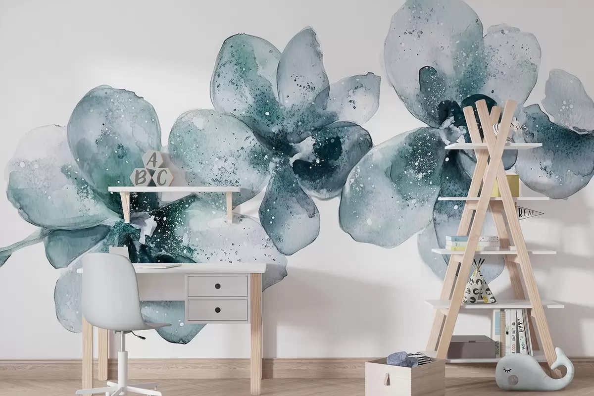 Fototapety Kvety orchideí v akvarelovom štýle, akvamarínové farby Nr. w03163v1