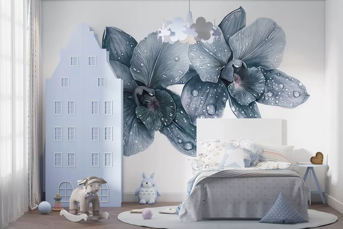 Fototapety Krásne kvety orchideí, akvarelový štýl kresby, modré farby Nr. w03164v2