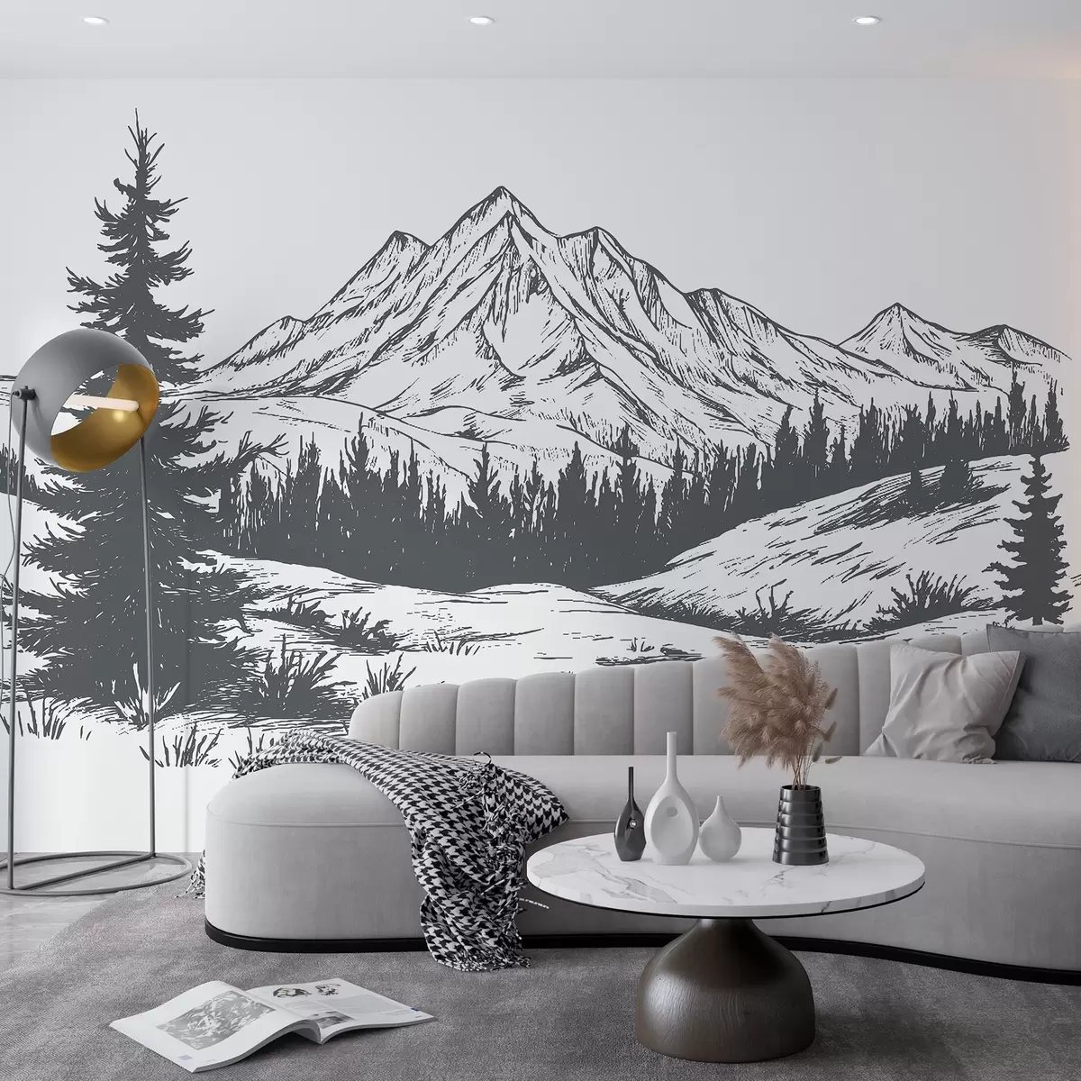 Fototapety Horská krajina s borovicami, les, príroda, tmavosivá farba Nr. w03344