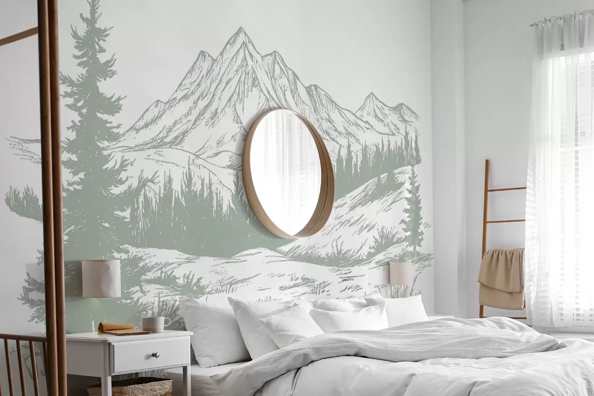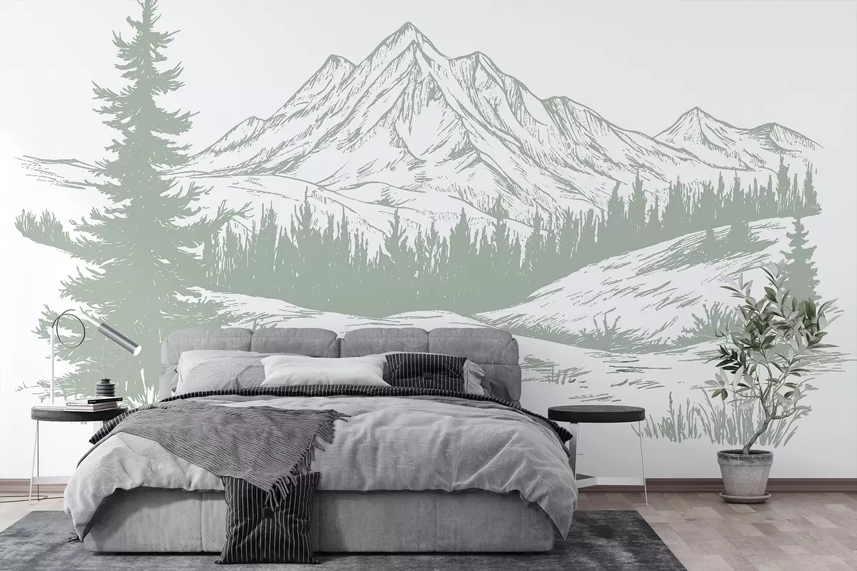 Fototapety Horská krajina s borovicami, les, príroda, mäkká zelená farba Nr. w03344v1