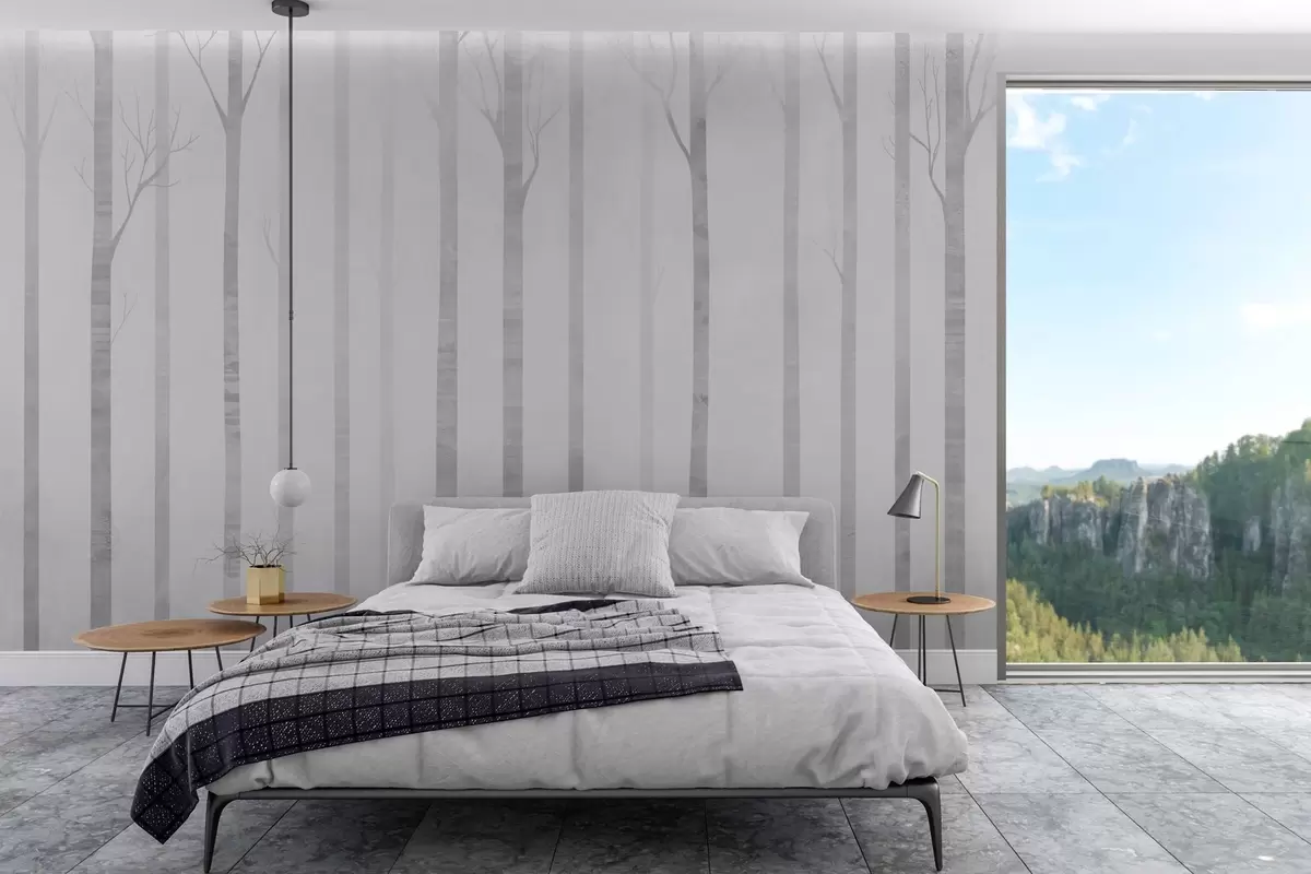 Fototapety Kmene stromov v hmle v odtieňoch sivej Nr. w03386