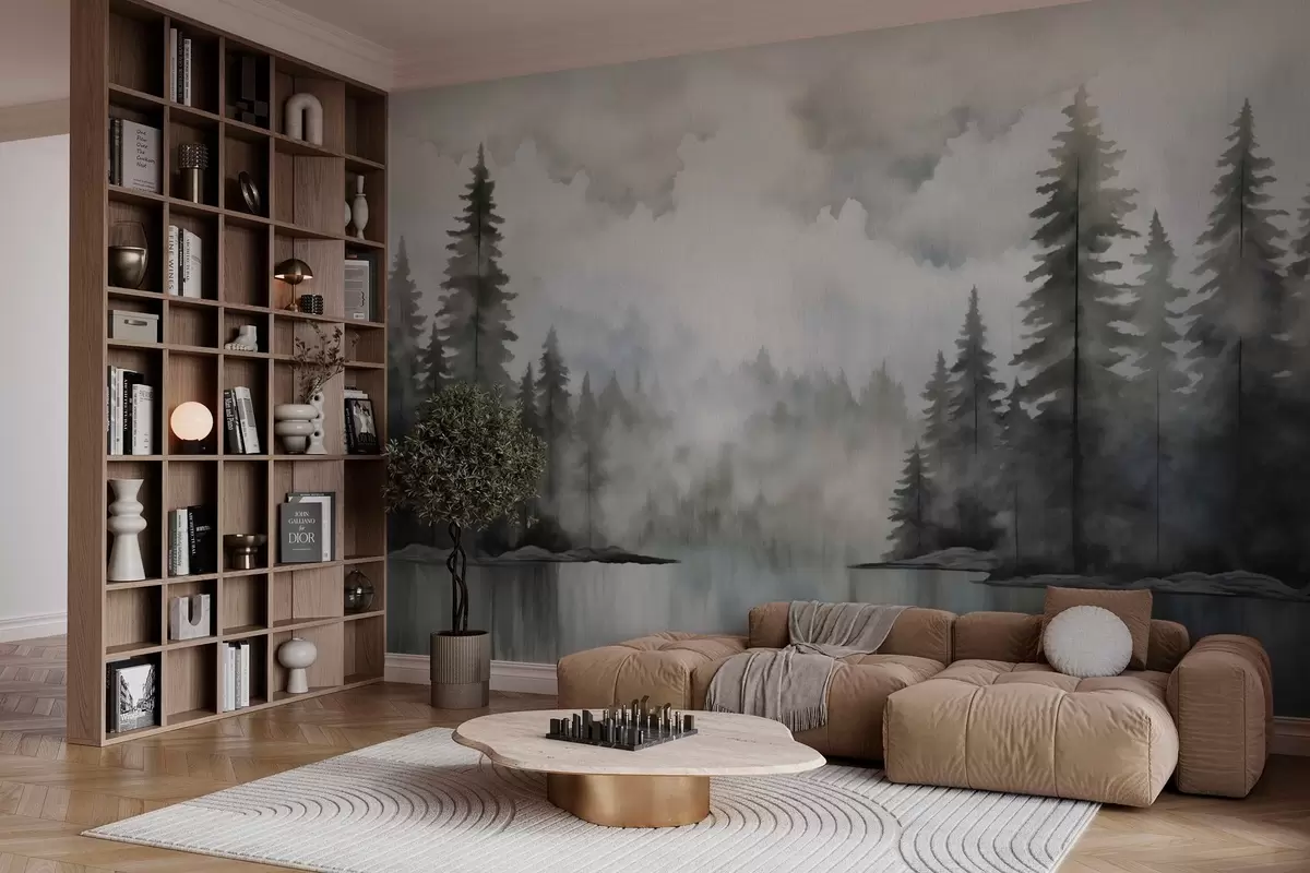Fototapety Les, jazero a zamračená obloha v akvarelovom štýle Nr. w03387