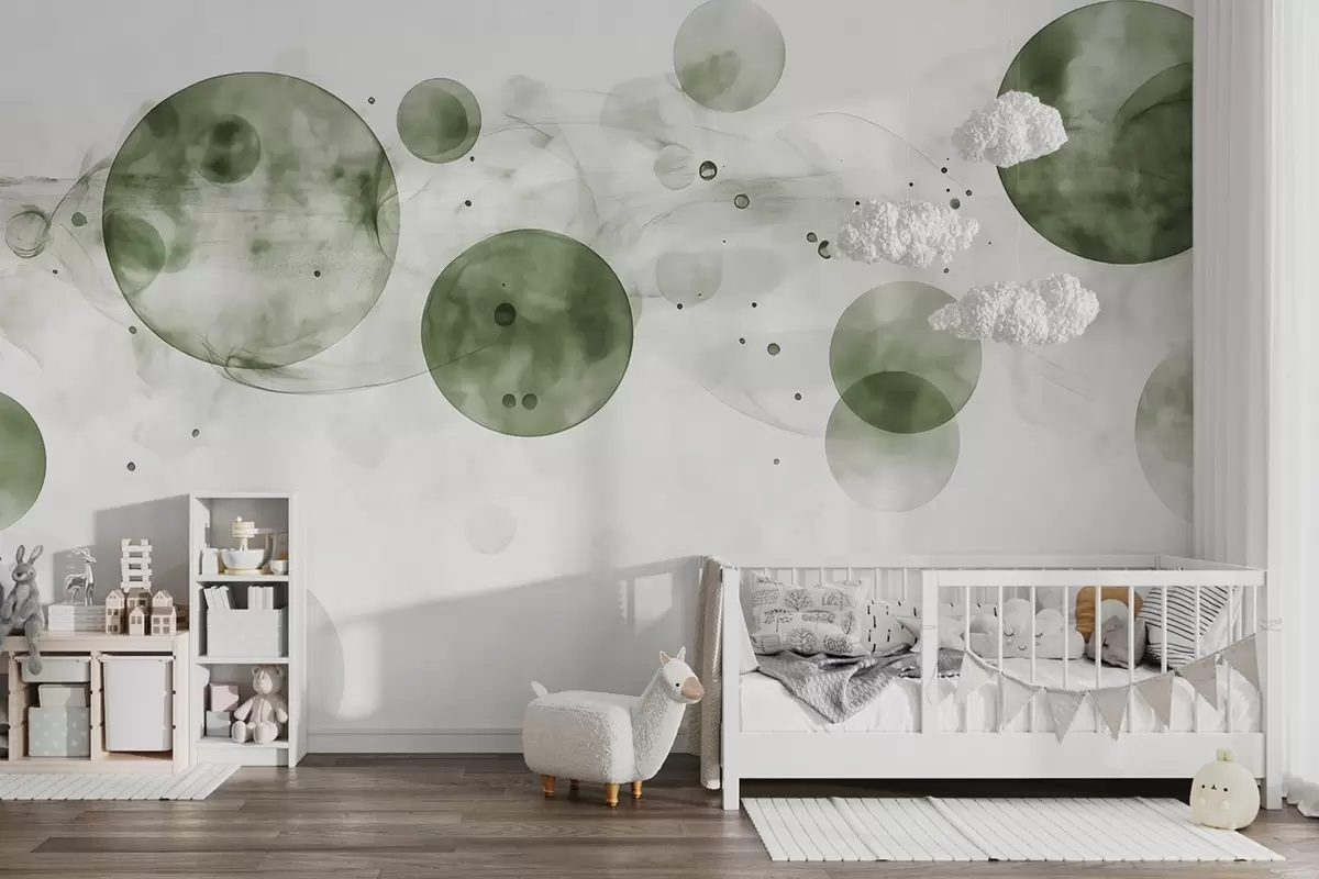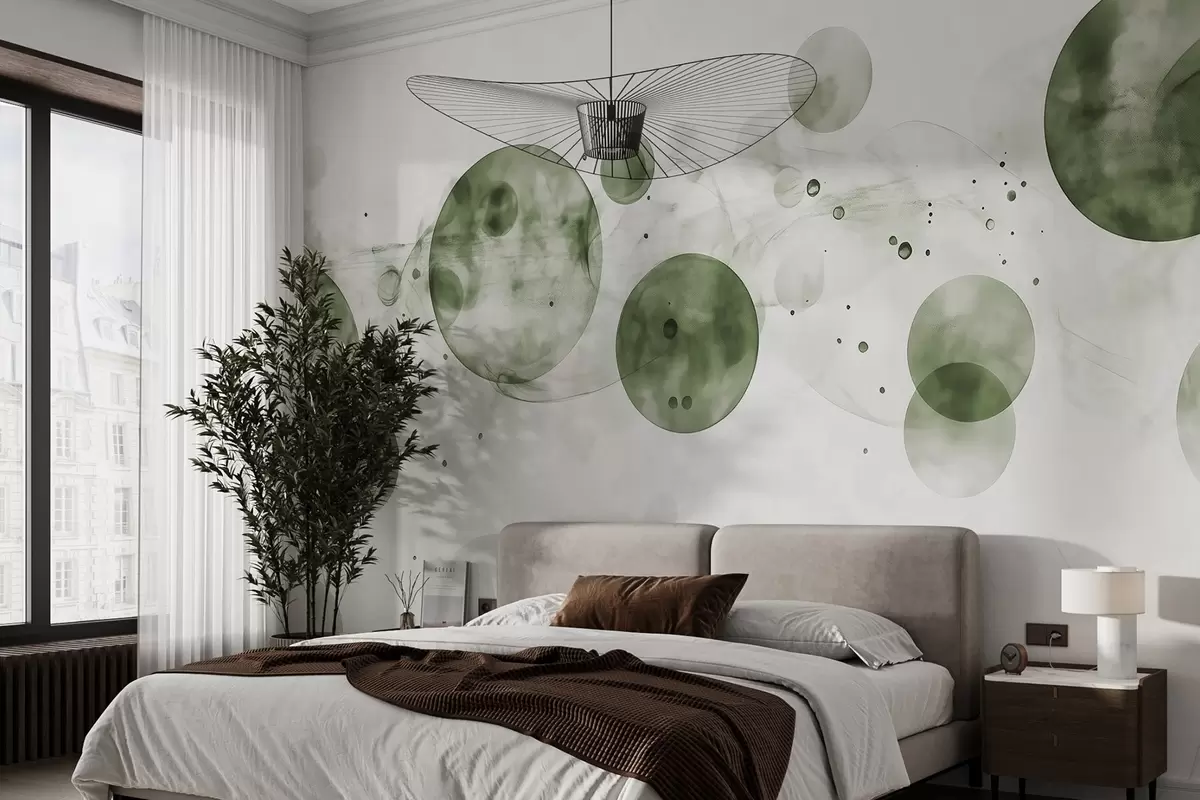 Fototapety Akvarelové kruhy, abstrakcia, éterické, fluidné umenie, zelené farby Nr. w03405v1