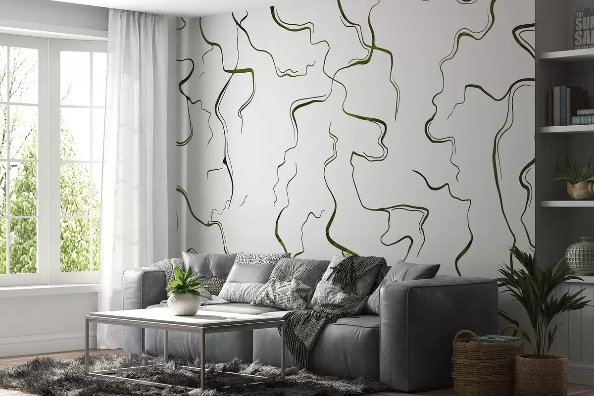 Fototapety Geometrické línie, štýl atramentu, abstrakcia, zelené farby Nr. w03436