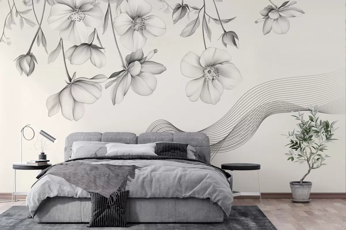 Fototapety grafické kvety a línie na svetlom pozadí Nr. w03454