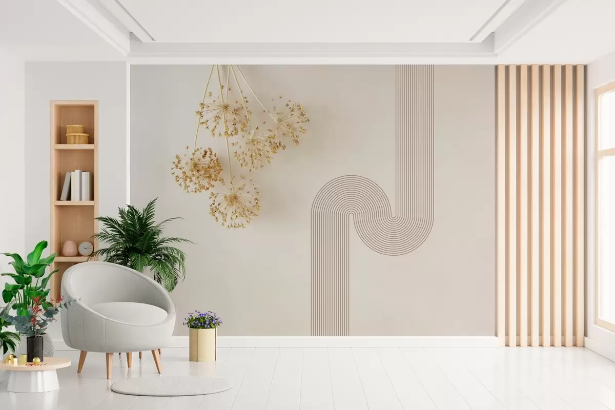 Fototapety elegantné sušené kvety a línie v béžových tónoch Nr. w03455