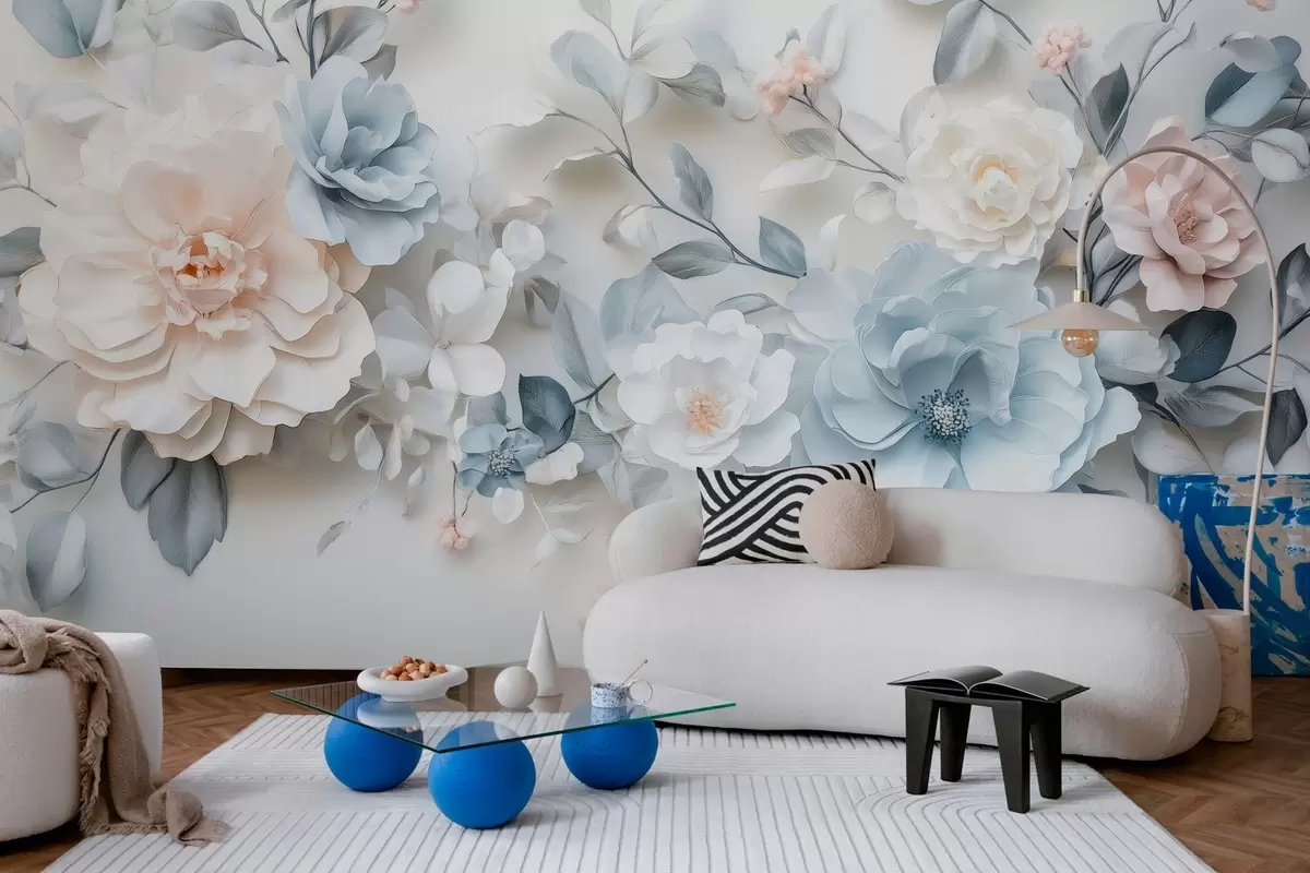 Fototapety jemné vzdušné kvety s objemovým efektom v štýle olejomaľby Nr. w03457