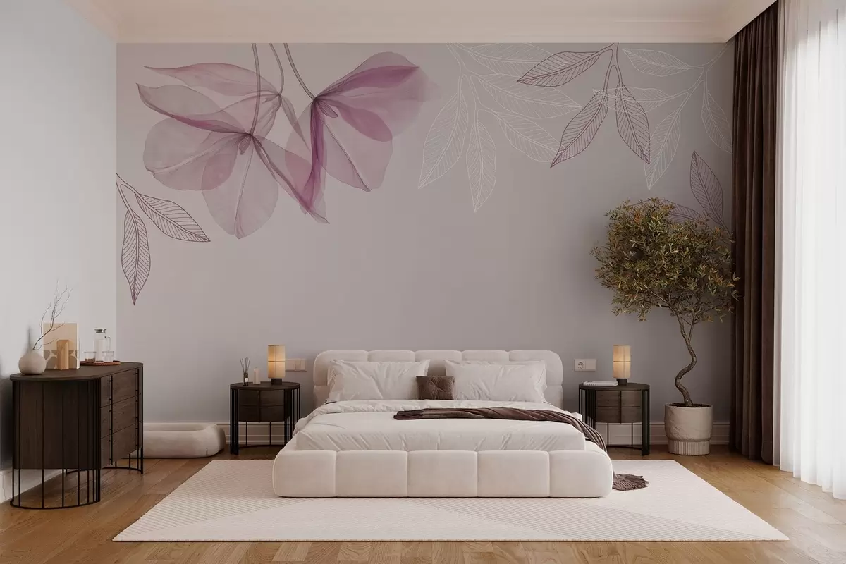 Fototapety jemné priesvitné kvety a listy vo fialových tónoch Nr. w03616v4