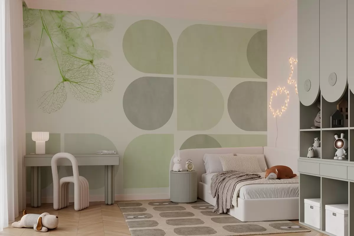 Fototapety geometria a sušené kvety so žilkami v zelených tónoch Nr. w03617v1