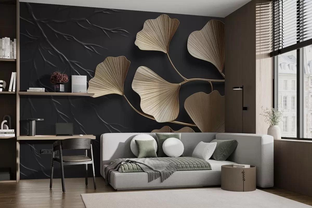Fototapety Objemové lístie na tmavej stene Nr. w03650v1