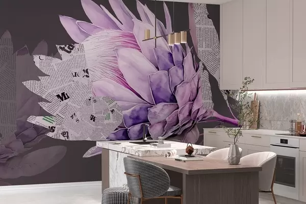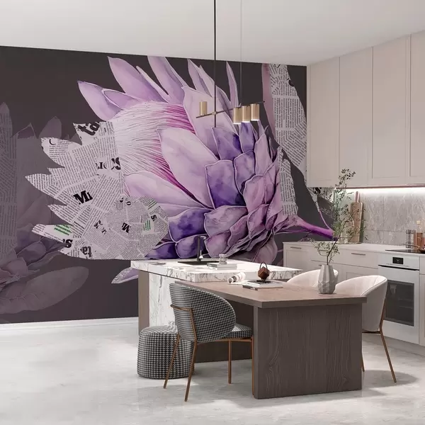 Fototapety Protea kvety, noviny umenie, kvetinové, tropické, tmavé pozadie, fialové farby Nr. w03667v2