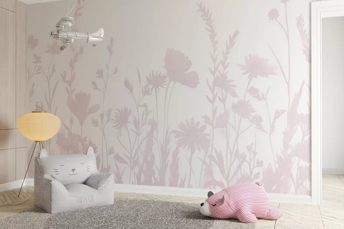 Fototapety Letná lúka, rustikálne, kvety, ružová paleta farieb Nr. w03670v2