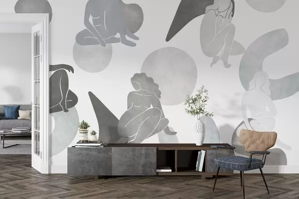 Fototapety Geometrické abstrakcie so ženskými siluetami, boho štýl, sivé farby Nr. w03753v5