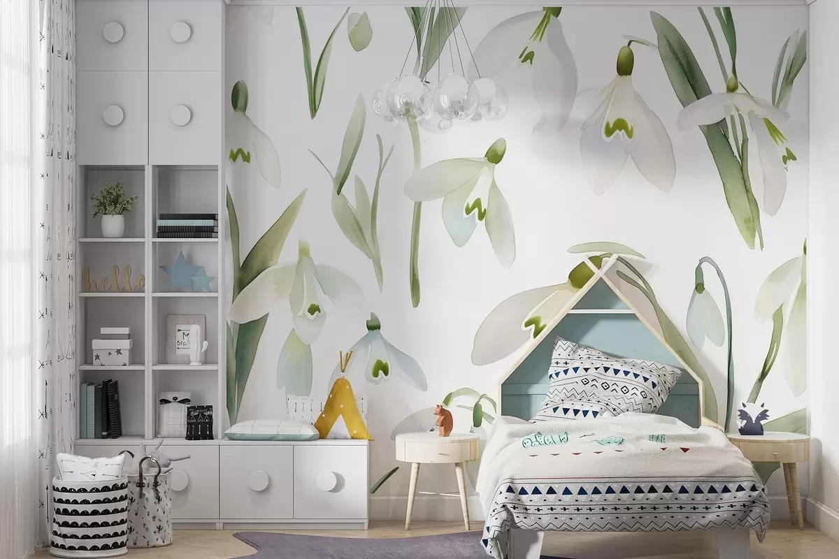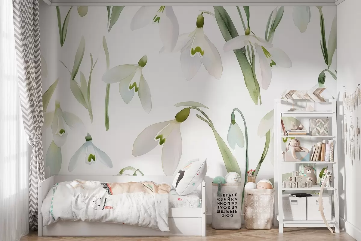 Fototapety Snežienky kvety v akvarelovom štýle, prírodné farby Nr. w03754