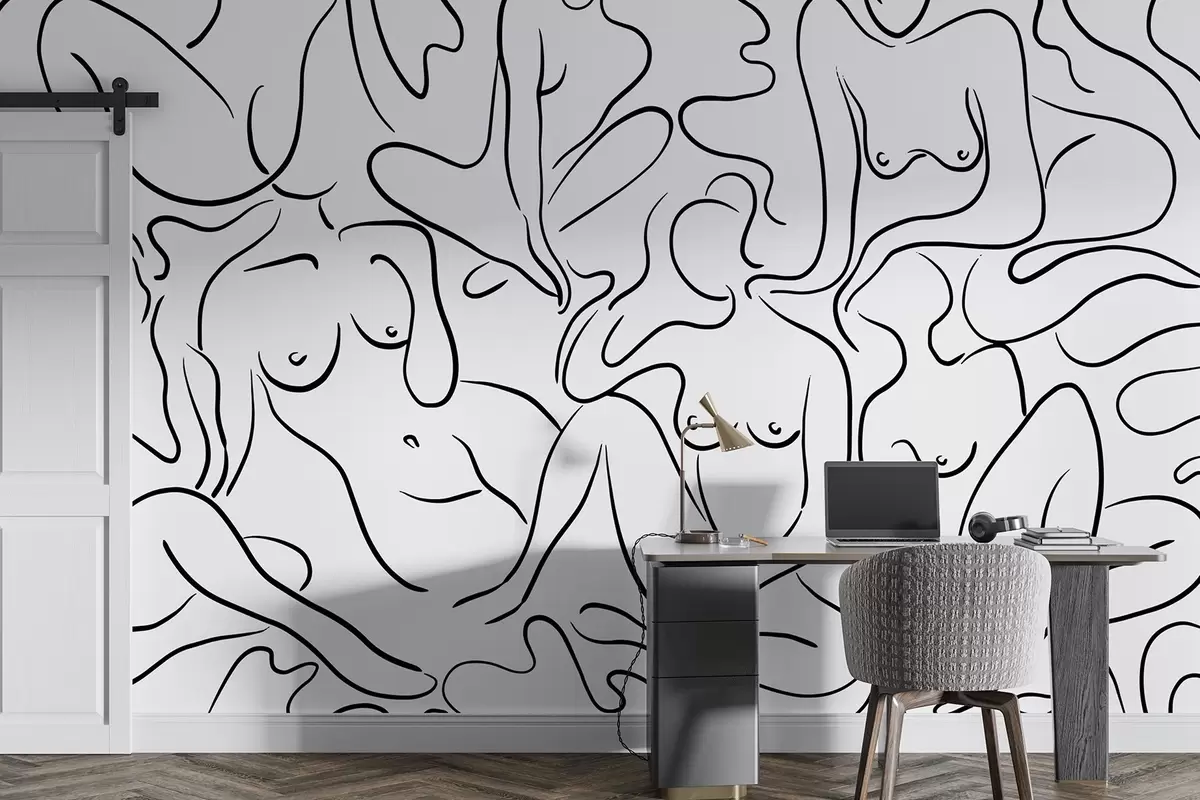 Fototapety Čiarková kresba siluety ženských tiel, abstrakcia, čierna farba Nr. w03755
