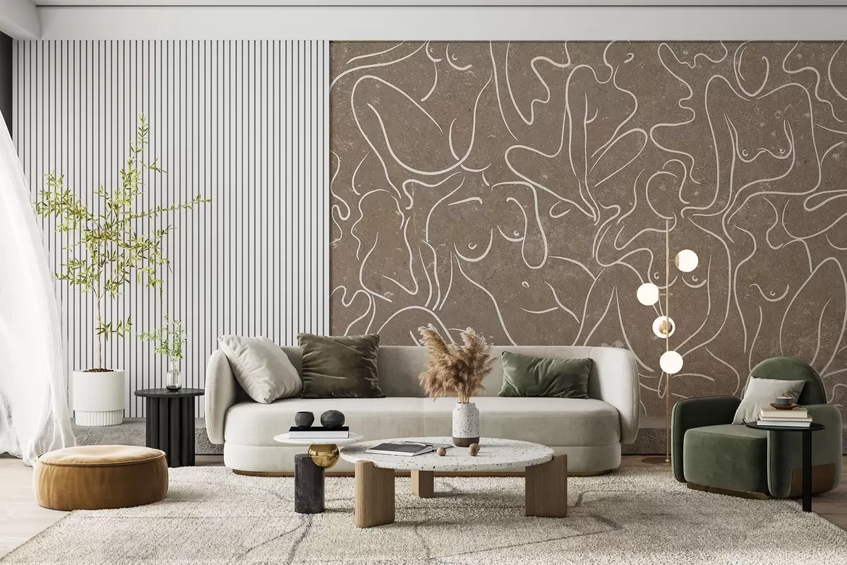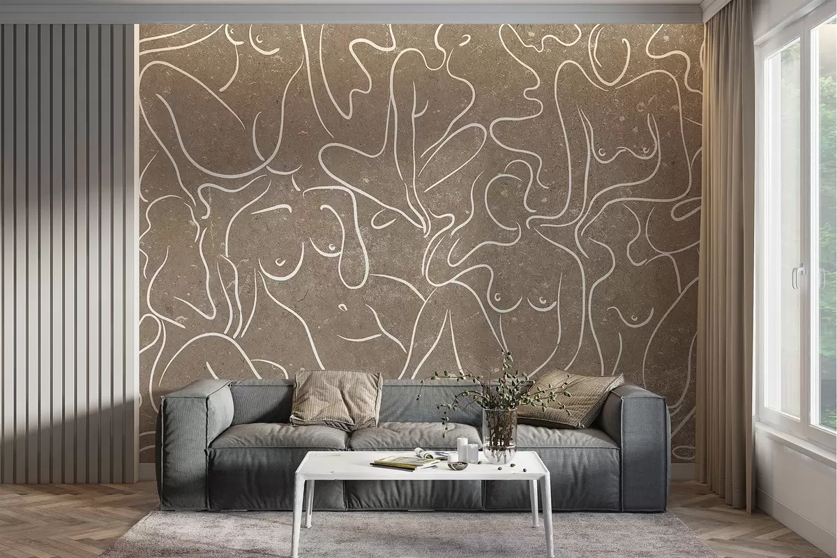 Fototapety Anatomické siluety kreslené čiarou, abstrakcia, béžové pozadie Nr. w03756