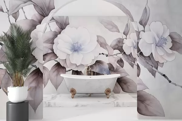 Fototapety Akvarelový štýl kamélie kvety na vetve, fialové farby Nr. w03761v1