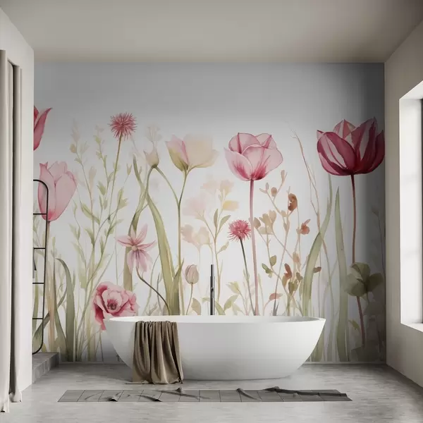 Fototapety Mäkkosť lúky,Tulipány, kvety, stonky, listy, divoké rastliny Nr. w03785