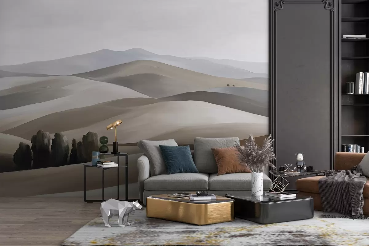 Fototapety Krajiny so stromami, Toskánsko, béžové a sivé farby, olejový štýl Nr. w03880v1
