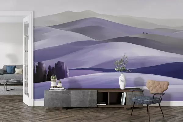 Fototapety Krajiny so stromami, Toskánsko, fialové farby, olejový štýl Nr. w03880v3